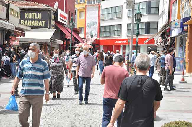 Eskişehirliler bayram alışverişi yapmak için adeta sokağa dökülüp sosyal mesafe kurallarını hiçe saydı.