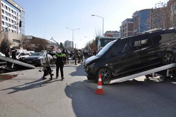 Çarpmanın etkisiyle kendi etrafında dönen otomobil aydınlatma direğine çarparak durabildi. Kazanın ardından direk yıkıldı.