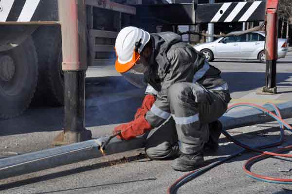 Aydınlatma direğinin devrilmesi sonucu tek yönü trafiğe kapanan İsmet İnönü-1 bulvarı...