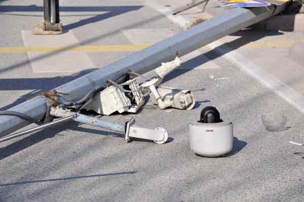 Eskişehir’de 2 aracın karıştığı maddi hasarlı trafik kazasında, üzerinde MOBESE kamerasının da bulunduğu aydınlatma direğinin devrilmesi sonucu yol uzun süre kapalı kaldı.