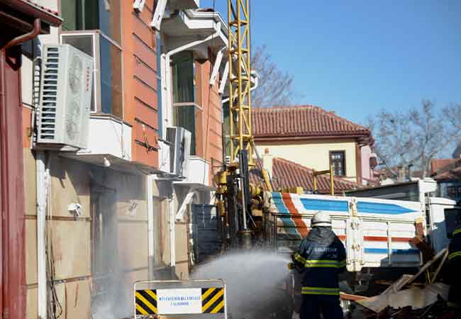 Patlama nedeniyle binanın karşısındaki tek katlı lüle taşı işleme atölyesinde çökme meydana geldi.