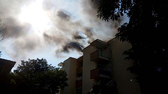 Eskişehir’de bir binada, çatı onarımında kullanılan zift kağıtlarının tutuşması sonucu yangın çıktı.