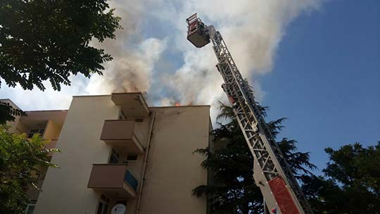 Eskişehir’de bir binada, çatı onarımında kullanılan zift kağıtlarının tutuşması sonucu yangın çıktı.