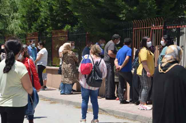 Eskişehir'de Liselere Geçiş Sınavı (LGS) için adaylar içeride veliler de dışarıda ter döktü. Dışarıda bekleyen velilerin büyük çoğunluğu sosyal mesafeye uymadı. Polis ekipleri sık sık mesafe konusunda uyarılar yaptı. (Haber: Esra Ünlü)