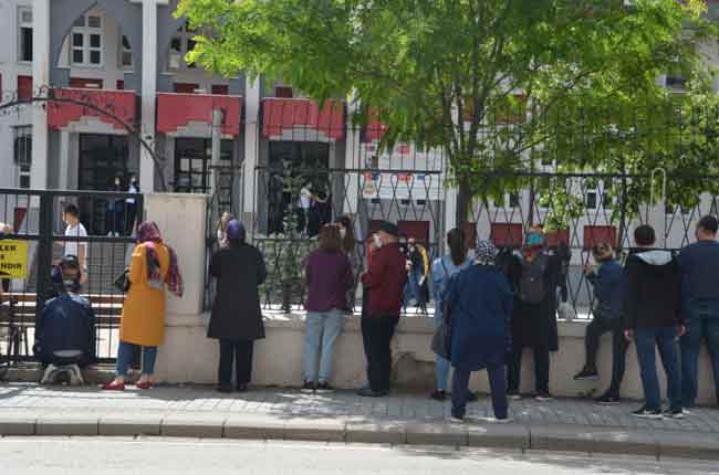 Eskişehir'de Liselere Geçiş Sınavı (LGS) için adaylar içeride veliler de dışarıda ter döktü. Dışarıda bekleyen velilerin büyük çoğunluğu sosyal mesafeye uymadı. Polis ekipleri sık sık mesafe konusunda uyarılar yaptı. (Haber: Esra Ünlü)