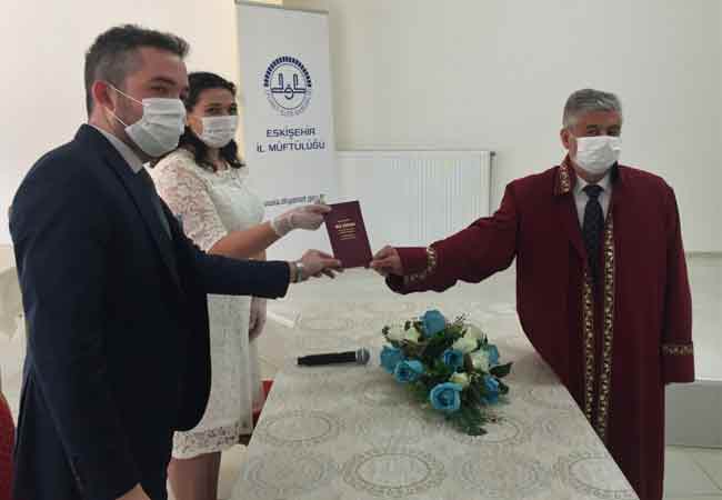 Eskişehir’de, bir çift Korona virüs (Covid-19) tedbirleri çerçevesinde nikah kıydı.