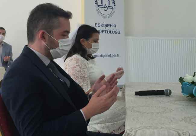 Eskişehir’de, bir çift Korona virüs (Covid-19) tedbirleri çerçevesinde nikah kıydı.