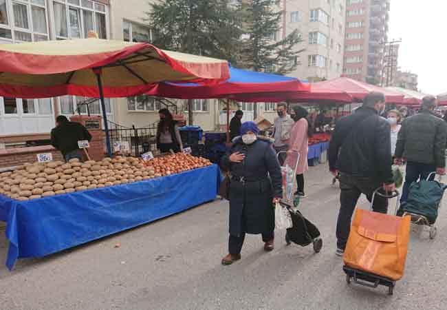 Eskişehir’de Korona virüs (Covid-19) tedbirlerine uymayan vatandaşların semt pazarında sosyal mesafeye dikkat etmeyerek, alışveriş yapmaları salgının yayılmasına adeta davetiye çıkarttı.