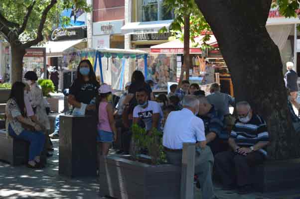 Öğle saatlerinde Hamamyolu'nda bulunan Çarşı Cami ve çevresinde vatandaşların sosyal mesafesiz yaz keyfi, bölgede duyarlı vatandaşları endişelendirirken ’Bu manzara ile sıfır vaka hep hayal olacak’ dedirttiriyor.