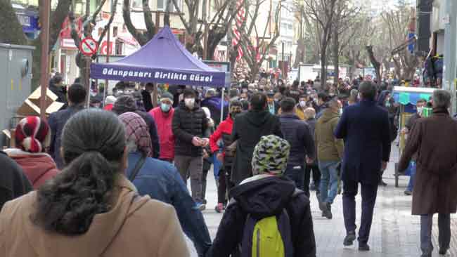 ...Eskişehir’in işlek noktalarından olan Hamamyolu, İki Eylül ve İsmet İnönü caddelerinde salgını hiçe sayan kalabalıklar oluştu.