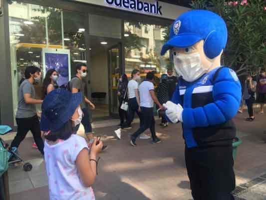 Eskişehir’de, Toplum Destekli Polislik Şube Müdürlüğü tarafından korona virüsle (Covid-19) mücadele kapsamında çocuk ve gençlere yönelik maskot polislerle bilgilendirme yapıldı. Etkinlikte miniklerle bol bol fotoğraf çektiren maskot polisler, maske ve sosyal mesafe kuralları hakkında da hem çocukları hem de ebeveynleri uyardı.