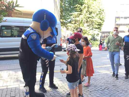 Eskişehir’de, Toplum Destekli Polislik Şube Müdürlüğü tarafından korona virüsle (Covid-19) mücadele kapsamında çocuk ve gençlere yönelik maskot polislerle bilgilendirme yapıldı. Etkinlikte miniklerle bol bol fotoğraf çektiren maskot polisler, maske ve sosyal mesafe kuralları hakkında da hem çocukları hem de ebeveynleri uyardı.