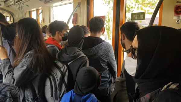 Eskişehir’de korona virüs (Covid-19) vaka sayılarının her geçen gün artmasına karşın özellikle tramvaylarda yolculuk yapanların sosyal mesafeye dikkat edilmediği görüldü.
