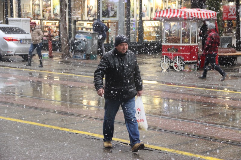 Eskişehir kent merkezinde yoğun şekilde yağan kar kısa sürede kenti beyaza bürüdü.