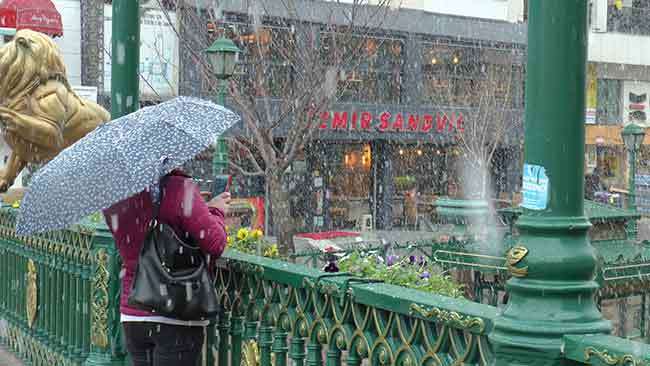 Eskişehir’de her sene böyle olmaya başladı. Eskişehir artık hep böyle. Normal diyebiliriz. İklimler bozuldu. Bugün kar yağışını hiç beklemiyordum. Hava durumunda yağmurlu gösteriyordu ancak nasip, kar yağdı. Biz yürürken kar bir anda başladı. Fena da olmadı aslında, Eskişehir çok güzel görünüyor bembeyaz