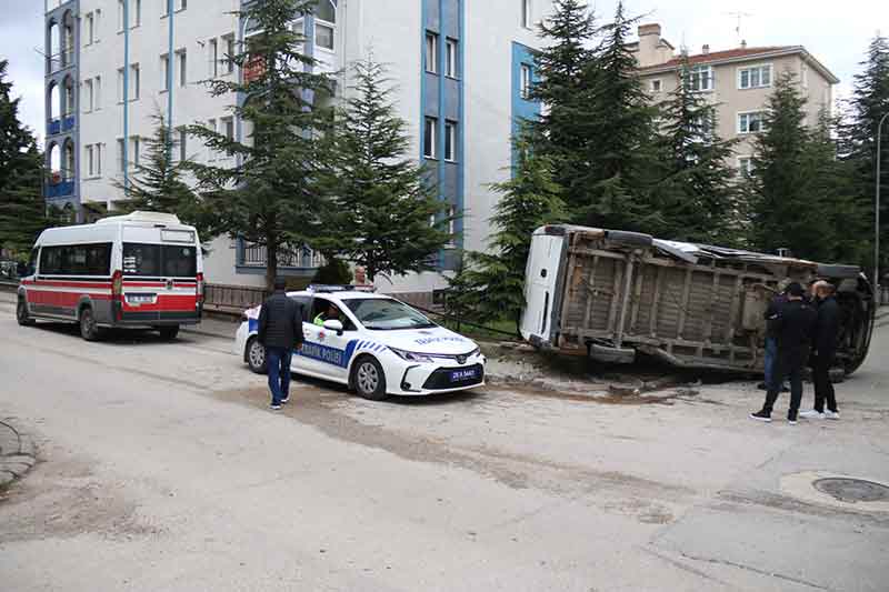 Eskişehir’de yolcu minibüsünün çarptığı panelvan araç yol kenarında bulunan siteye ait bahçeye devrildi.