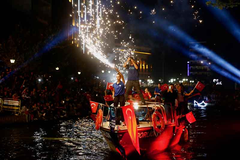 Eskişehir'de 30 Ağustos Zafer Bayramı dolayısıyla fener alayı ve havai fişek gösterisi düzenlendi.