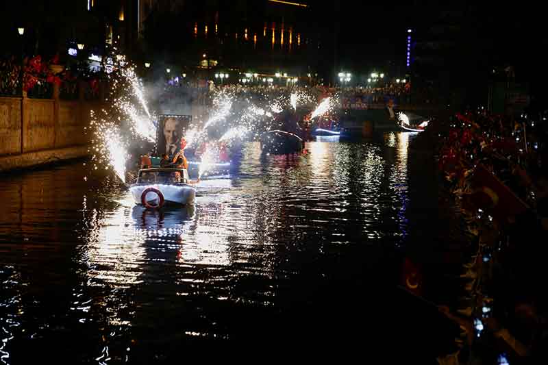 Eskişehir'de 30 Ağustos Zafer Bayramı dolayısıyla fener alayı ve havai fişek gösterisi düzenlendi.