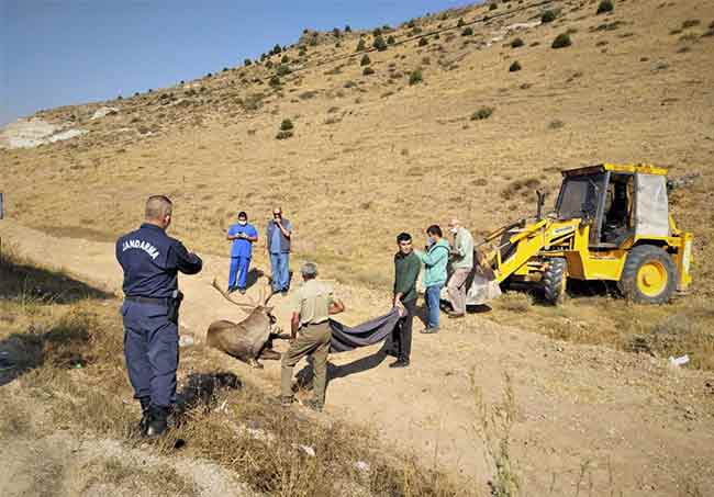 Eskişehir’in Seyitgazi ilçesinde bir aracın çarptığı geyik belediye ekipleri, jandarma ve veterinerler tarafından kurtarıldı.