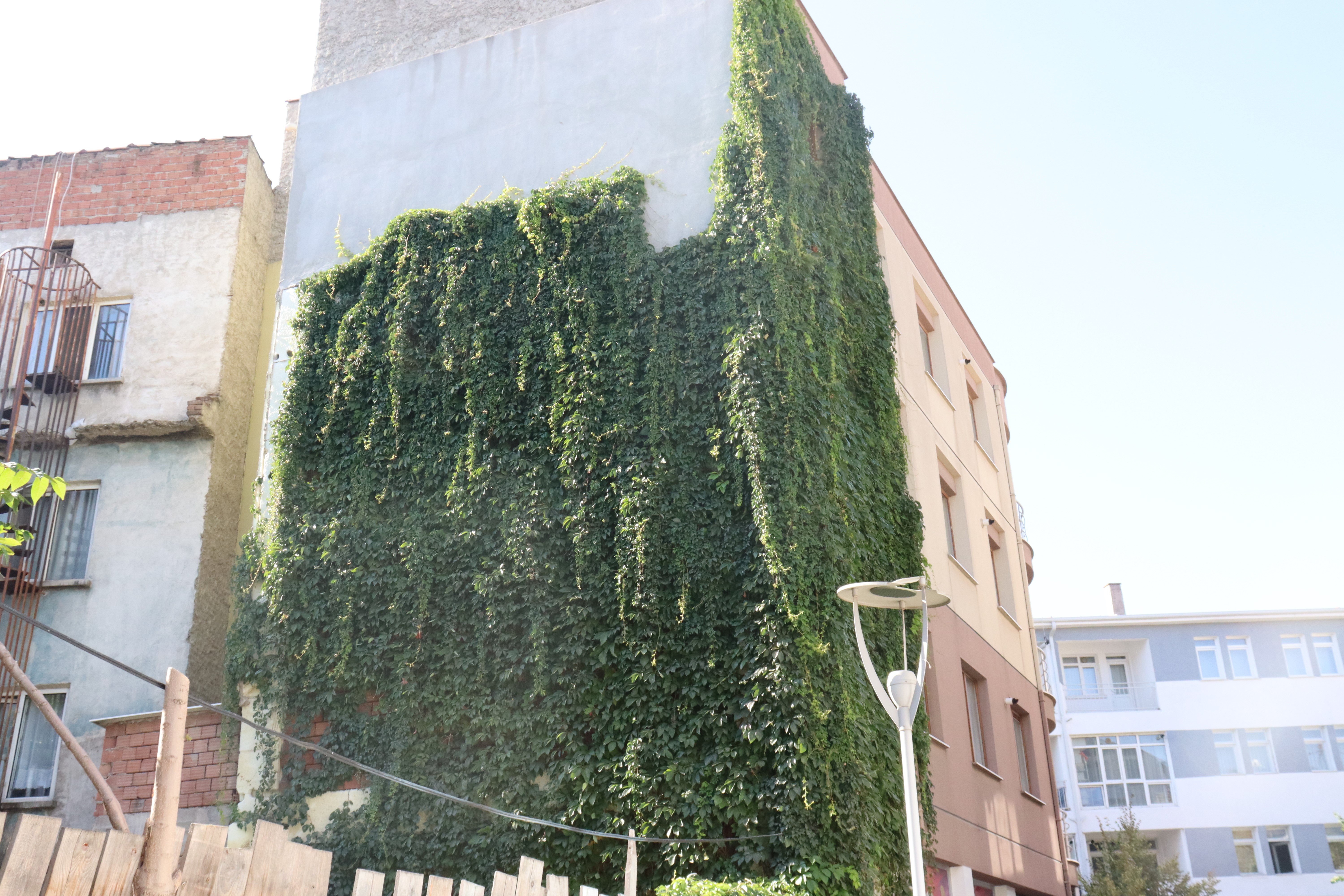 Eskişehir’de bir sokaktaki apartmanın boydan sarmaşık kaplaması gören vatandaşların ilgisini çekti.