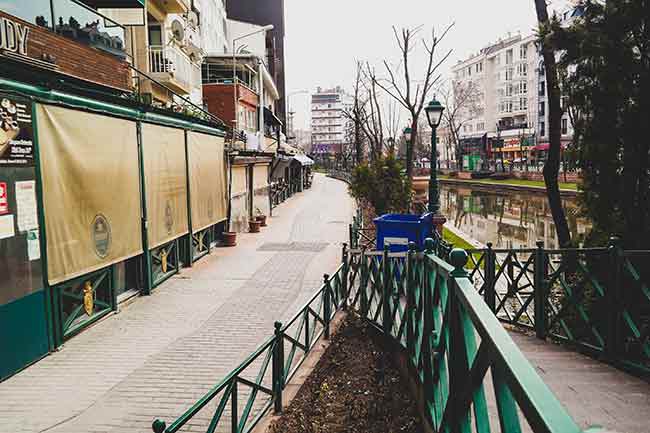 Korona virüs tedbirleri kapsamında yayınlanan yeni haritada rengi kırmızıya dönen Eskişehir’de, hafta sonu yasaklarının gelmesiyle birlikte işlek caddeler boş kaldı