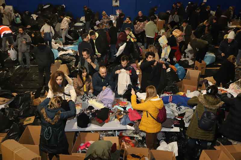 Malzemeler Büyükşehir Belediyesi Spor Salonu’nda belediye görevlileri ve gönüllerin de desteği ile koliler halinde TIR’lara yüklenerek Eskişehir Valiliği AFAD Koordinasyonunda deprem bölgesindeki illere ulaştırılıyor.