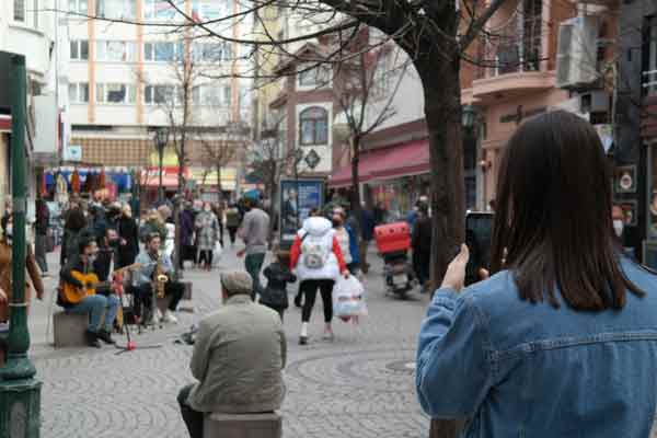 Odunpazarı ilçesinin Arifiye Mahallesi Yalbı Sokak üzerinde kurdukları çalgı aletleri ile şarkılar söyleyen müzisyenler kısa sürede vatandaşların ilgisine neden oldu.