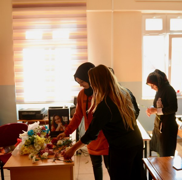 Eskişehir'de geçirdiği kazada yaşamını yitiren sınıf öğretmeni Burcu Öğretir için görev yaptığı okulda düzenlenen anma etkinliğinde, mesai arkadaşları, öğrencileri ve veliler gözyaşlarına hakim olamadı