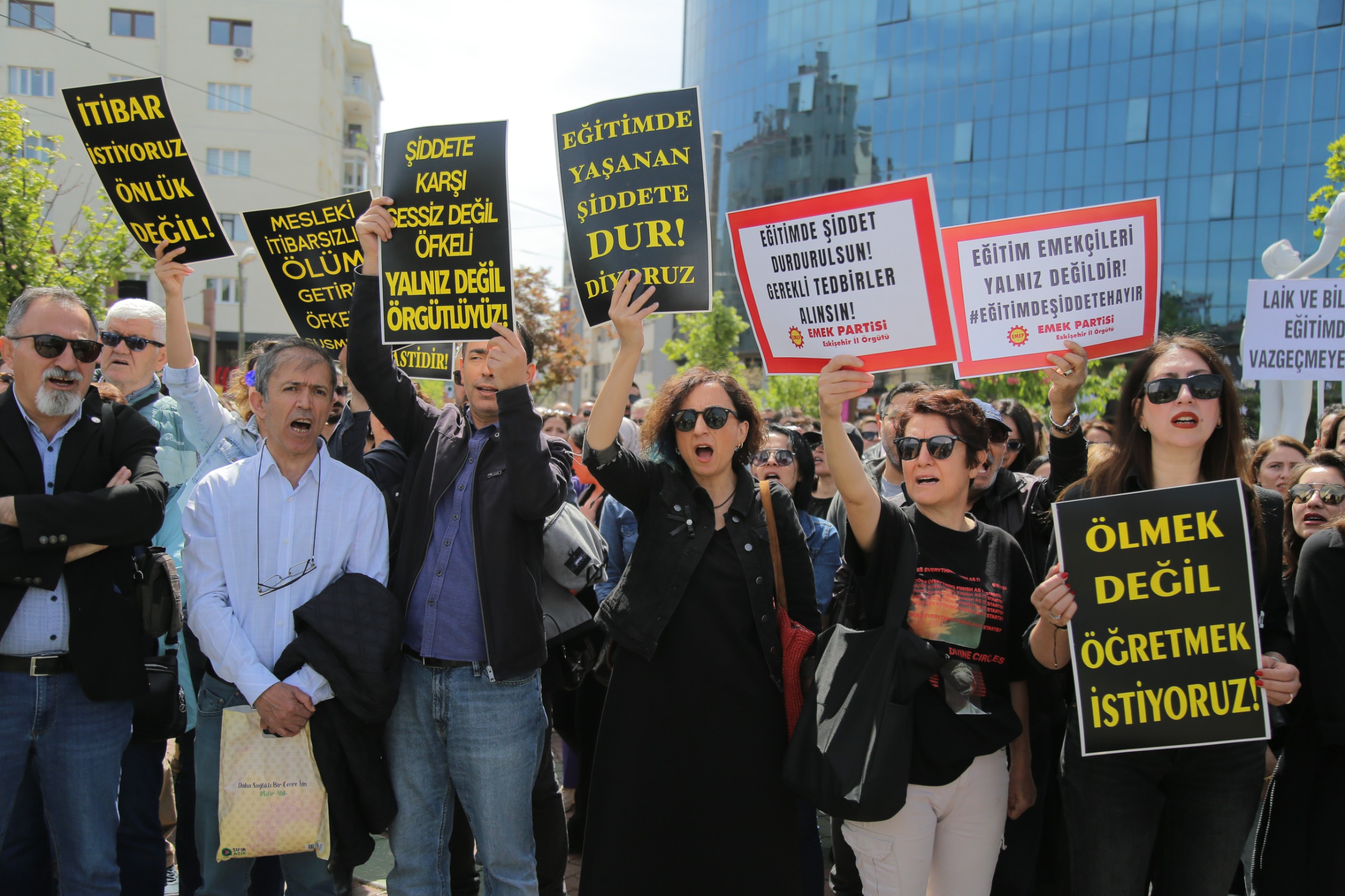 Eskişehir'de, 20 Aralık 2022 tarihinde İstanbul Eyüpsultan'da öğrencisi tarafından silahla öldürülen okul müdürü İbrahim Oktugan için eğitim emekçileri bir araya geldi. Sendika üyesi binlerce öğretmenin katıldığı protestolar Ulus Anıtı önünde gerçekleşti. Eğitim Sen, Eğitim İş, Özel Sektör Öğretmenleri Sendikası, Hürriyetçi Eğitim Sen, Tüm Öğrenci Velileri Dayanışma Derneği ve Tüm Eğitim Çalışanları Sendikası üyesi öğretmenler, cinayeti kınamak ve çalışma koşullarının iyileştirilmesi için taleplerini dile getirmek için bir araya geldi. Öğretmenlere, öğrenciler ve veliler de destek verdi. Eğitimciler, "Önlüklerimize kan bulaştı. Artık yeter! Can korkusuyla çalışmak istemiyoruz" diyerek Milli Eğitim Bakanı Yusuf Tekin'e istifa çağrısında bulundu. Eğitim sendikaları, Oktugan'ın öldürülmesinin ardından Tüm Türkiye'de iş bırakmıştı. Bu trajik olay, eğitim camiasında büyük üzüntü ve öfkeye yol açtı. Öğretmenler, artan şiddete ve güvensiz çalışma koşullarına karşı tepkilerini dile getirmek için seslerini yükseltmeye devam ediyorlar.