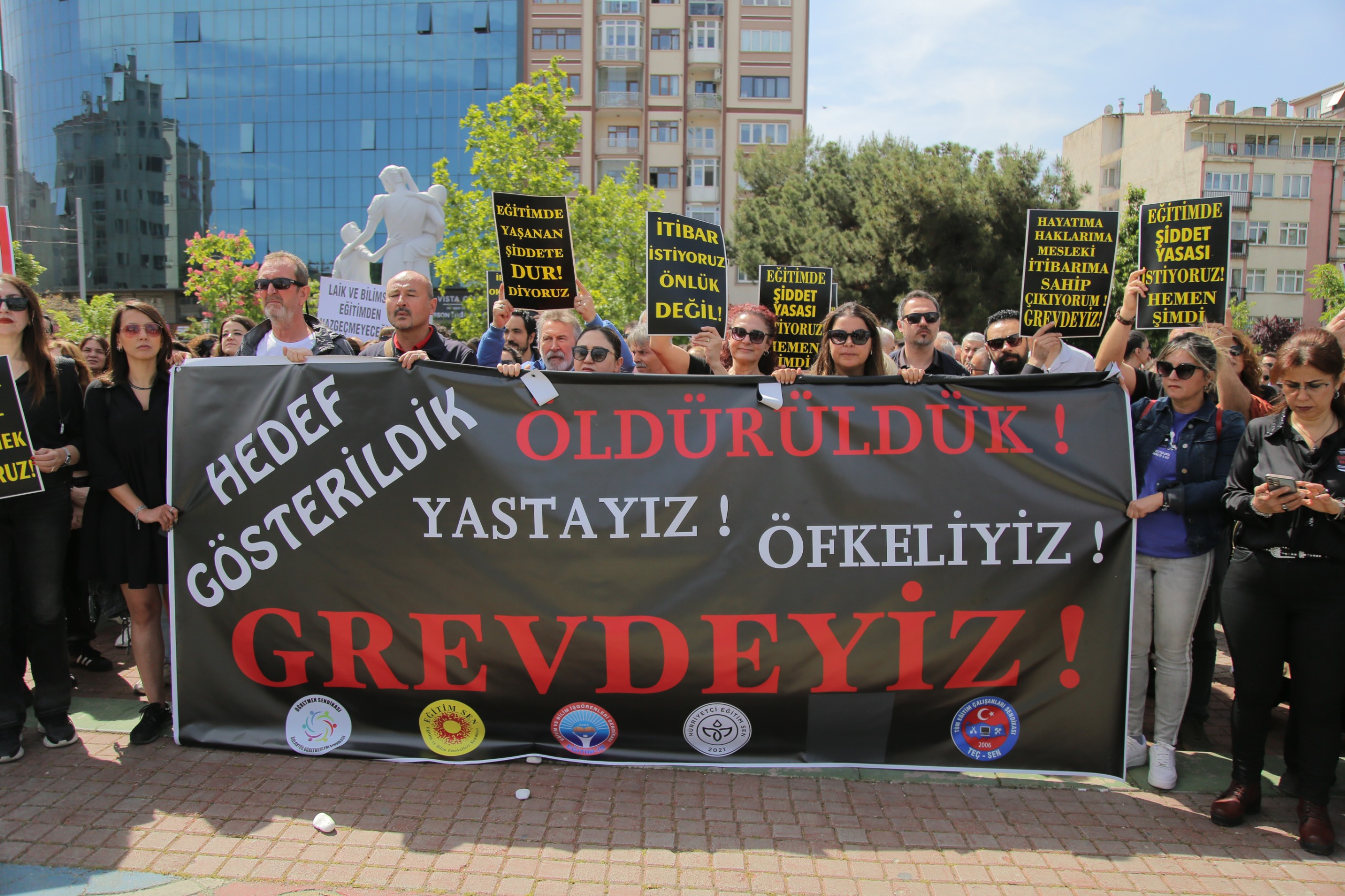 Eskişehir'de, 20 Aralık 2022 tarihinde İstanbul Eyüpsultan'da öğrencisi tarafından silahla öldürülen okul müdürü İbrahim Oktugan için eğitim emekçileri bir araya geldi. Sendika üyesi binlerce öğretmenin katıldığı protestolar Ulus Anıtı önünde gerçekleşti. Eğitim Sen, Eğitim İş, Özel Sektör Öğretmenleri Sendikası, Hürriyetçi Eğitim Sen, Tüm Öğrenci Velileri Dayanışma Derneği ve Tüm Eğitim Çalışanları Sendikası üyesi öğretmenler, cinayeti kınamak ve çalışma koşullarının iyileştirilmesi için taleplerini dile getirmek için bir araya geldi. Öğretmenlere, öğrenciler ve veliler de destek verdi. Eğitimciler, "Önlüklerimize kan bulaştı. Artık yeter! Can korkusuyla çalışmak istemiyoruz" diyerek Milli Eğitim Bakanı Yusuf Tekin'e istifa çağrısında bulundu. Eğitim sendikaları, Oktugan'ın öldürülmesinin ardından Tüm Türkiye'de iş bırakmıştı. Bu trajik olay, eğitim camiasında büyük üzüntü ve öfkeye yol açtı. Öğretmenler, artan şiddete ve güvensiz çalışma koşullarına karşı tepkilerini dile getirmek için seslerini yükseltmeye devam ediyorlar.