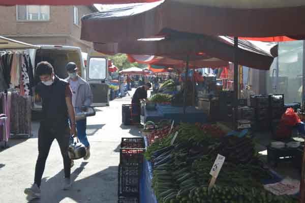 Ülke genelinde yaşanan 17 günlük tam kapanma sürecinde İçişleri Bakanlığı genelgesi doğrultusunda cumartesi günleri tezgahlarını kuran pazartesi pazarı esnafı, bir gün aralığıyla bugün yine satış şansını yakaladı.