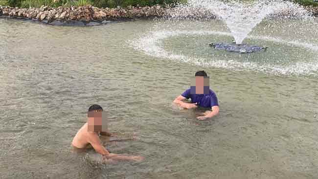Eskişehir’in Batıkent mahallesinde güneşli havanın bunaltıcı etkisinden kurtulmak için süs havuzuna giren 14 yaşındaki 2 genç arkadaş, öğleden sonra etkisini gösteren sağanak yağışa havuzda yakalandı.