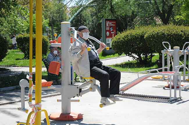 Eskişehir'de de 65 yaş üstü vatandaşlara belli sürelerle sokağa çıkma kısıtlamasının kaldırılmasının ardından sokaklarda spor yapan yaşlılar, adeta gençlere taş çıkardı.