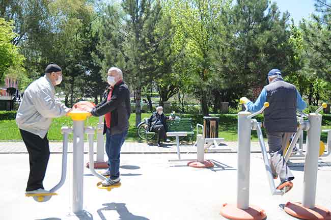 Eskişehir'de de 65 yaş üstü vatandaşlara belli sürelerle sokağa çıkma kısıtlamasının kaldırılmasının ardından sokaklarda spor yapan yaşlılar, adeta gençlere taş çıkardı.