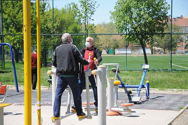 Eskişehir'de de 65 yaş üstü vatandaşlara belli sürelerle sokağa çıkma kısıtlamasının kaldırılmasının ardından sokaklarda spor yapan yaşlılar, adeta gençlere taş çıkardı.