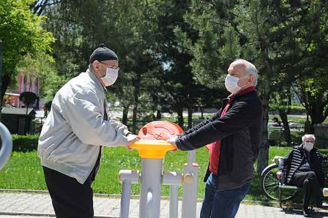Eskişehir'de de 65 yaş üstü vatandaşlara belli sürelerle sokağa çıkma kısıtlamasının kaldırılmasının ardından sokaklarda spor yapan yaşlılar, adeta gençlere taş çıkardı.