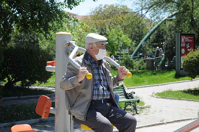 Eskişehir'de de 65 yaş üstü vatandaşlara belli sürelerle sokağa çıkma kısıtlamasının kaldırılmasının ardından sokaklarda spor yapan yaşlılar, adeta gençlere taş çıkardı.