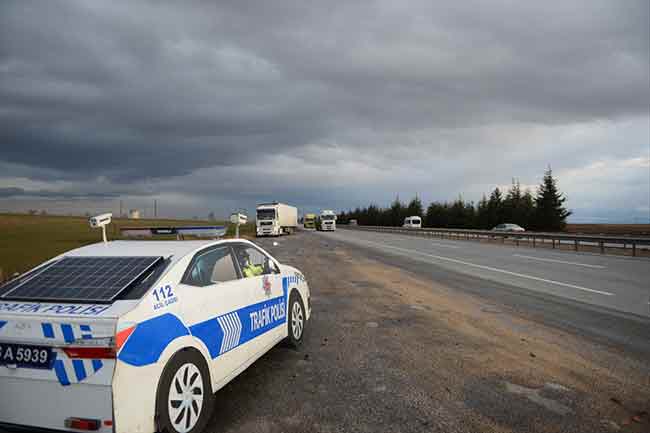 Eskişehir'de, trafik kazalarının azaltılması amacıyla bazı noktalara yerleştirilen "maket polis aracı"nın işlevini artırmak amacıyla güneş enerjili 3 boyutlu mobil maket üretildi.