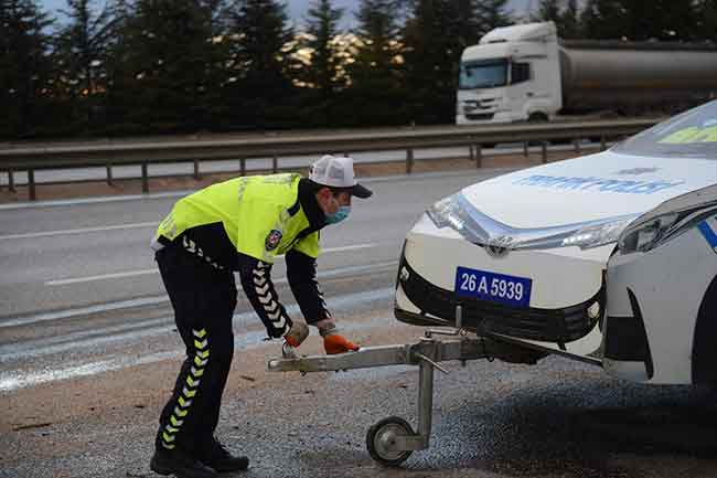 Eskişehir'de, trafik kazalarının azaltılması amacıyla bazı noktalara yerleştirilen "maket polis aracı"nın işlevini artırmak amacıyla güneş enerjili 3 boyutlu mobil maket üretildi.