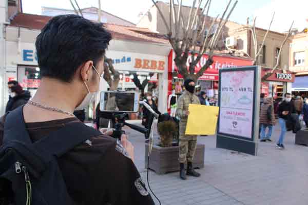 Eskişehir'de sosyal deney yapmak isteyen bir genç asker kıyafeti giydikten sonra 'Sizin için şehit oldum. Bana bir şey söyle' yazılı pankart ile caddede vatandaşların duygularını ölçmek istedi. Gencin bu deneyi bir çok vatandaşın duygu dolu anlar yaşamasına neden oldu.