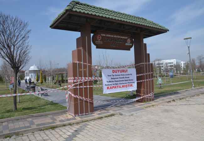 . Valiliğin talimatıyla kapatılan parkın kapısına ‘Yen Tip Corona Virüs (COVİD-19) salgınına yönelik alınan tedbirler kapsamında Dede Korkut Parkımız ve Spor alanlarımız kullanıma kapatılmıştır’ yazısı asıldı.