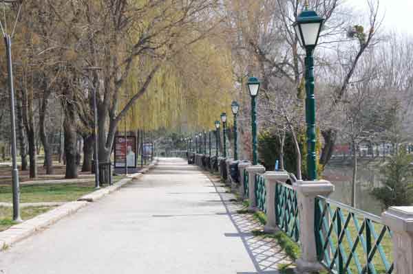 Eskişehir'de hafta sonu uygulanan sokağa çıkma kısıtlamasıyla birlikte sessizliğe bürünen Kanlıkavak Parkı drone ile havadan görüntülendi.