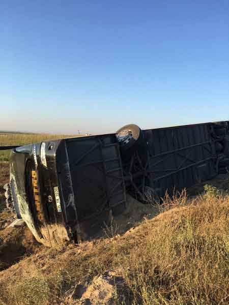 Eskişehir'de, kontrolden çıkan şehirlerarası yolcu otobüsünün devrilmesi sonucu 13 kişi yaralandı.