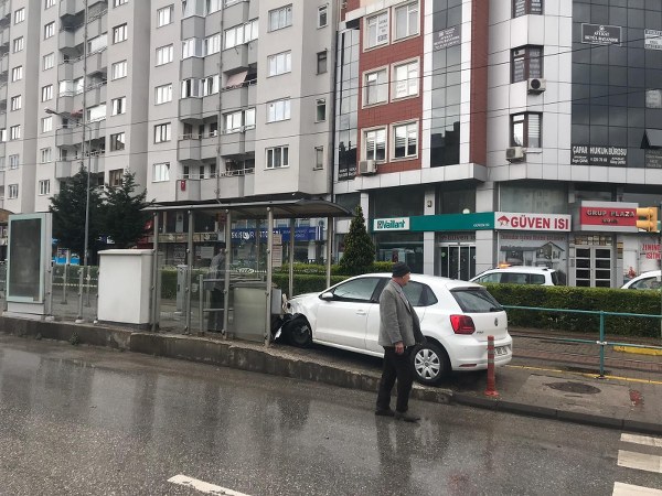 Eskişehir'de gerçekleşen trafik kazası sonrası Kemal K. idaresindeki otomobil savrularak tramvay durağına çarptı. 2 kişinin yaralanması ile sonuçlanan kaza, güvenlik kamerası ile saniye saniye kaydedildi.