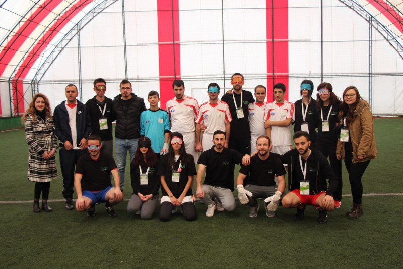 Eskişehir'de, 3 Aralık Dünya Engelliler Günü'nde farkındalık oluşturmak amacıyla Öz Görsem Spor Kulübü ile şarkıcı Haluk Levent'in başkanlığını yaptığı Anadolu Halk ve Barış Platformu (AHBAP) üyeleri, gözlerini bandajla kapatarak futbol maçı yaptı.