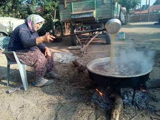 Bu toprak her yerde bulunan bir şey değil. Bunun için dağa çıkmam gerekiyor. Bu toprağı eve getirdikten sonra ise üzümden şıra çıkarmak için üzümleri ezme işlemi başlıyor. Son olarak da toprak ile durulmuş şırayı kazanlarda kaynatıyoruz” dedi.