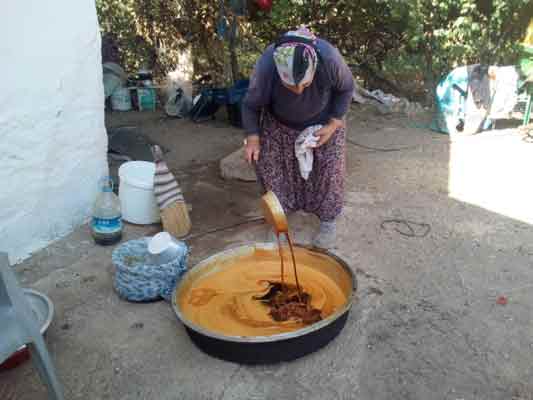 ...“Hiçbir katkı maddesi kullanmadığımız pekmezimizi elde ederken kullanılan toprak ve tatlı üzümlerimizle damak çatlatan cinsten bir ürün ortaya çıkıyor” diye konuştu.