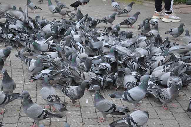 Koronavirüs sürecinde Eskişehir’in belli yerlerde bulunan güvercinlere yem verenlerin sayısı oldukça düştü, müşterileri azalan yem satıcıları da zor günler geçiriyor.