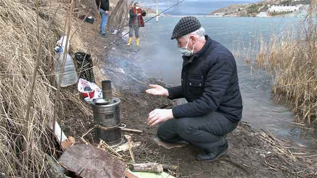 Eskişehir'de bazı vatandaşlar, şehir merkezi kalabalığından göl ve göletler kenarına giderek, hem korona virüsten korunuyor hem de balık tutarak doğada huzur buluyor.