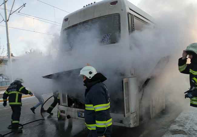 Eskişehir’de bir servis otobüsünün motor kısmı alev aldı. İtfaiye ekiplerinin müdahalesiyle söndürülen araçta yaklaşık 10 bin TL'lik zarar meydana geldi.